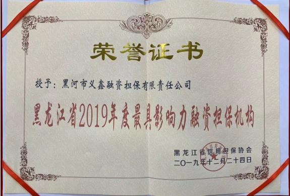 • 2019/12/30 義鑫擔保公司榮獲“黑龍江省2019年度最具影響
